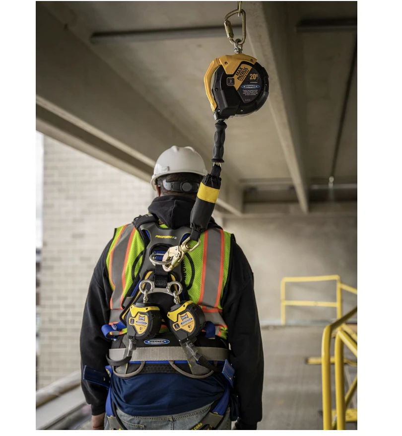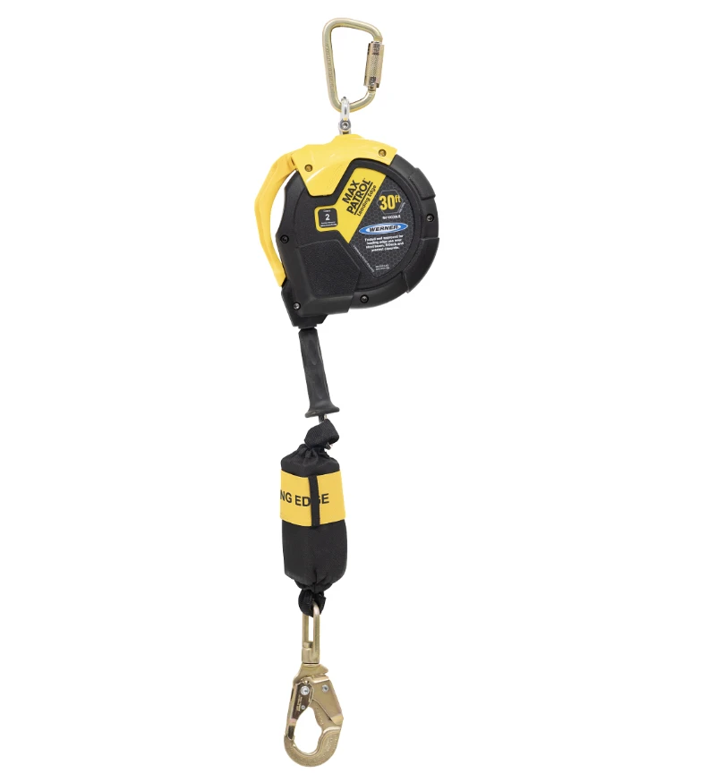The R410030LE 30-foot Max Patrol Self-Retracting Lifeline is a Class 2 device approved for use in leading edge applications. Tested over the most common leading edge materials the Max Patrol leading edge is approved for use over steel beam, precast concrete, and b-deck. Lightweight and compact the R410030LE has 30 feet of 3⁄16-inch galvanized steel cable, with a polyester shock pack and a polymer housing. This next generation SRL offers the highest standard in safety and ergonomics with a unique carrying handle for easy transport. When attached overhead, the Max Patrol has a 24-inch maximum arrest distance ideal for low clearance applications.