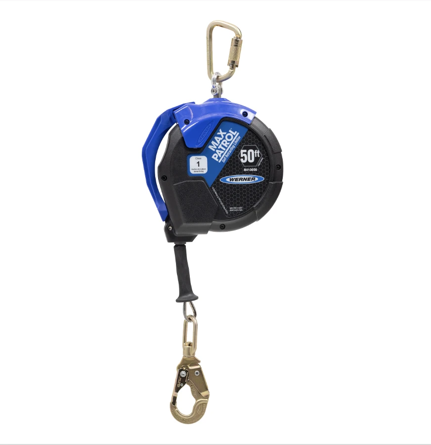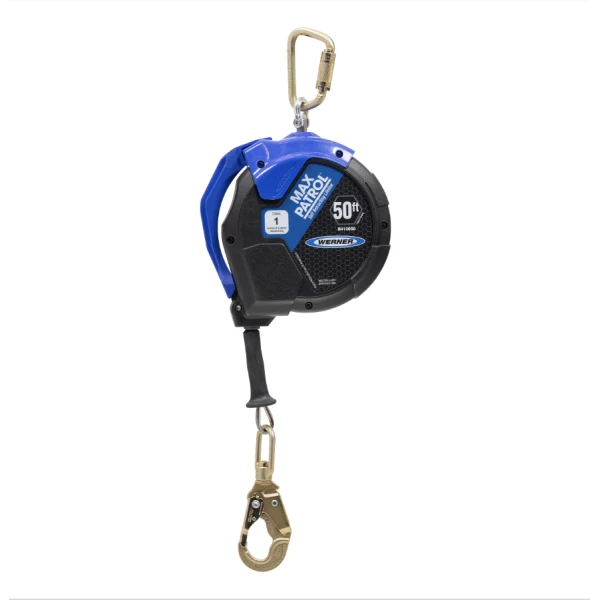 The R410050 50-foot Max Patrol Self-Retracting Lifeline is a Class 1 device that allows more freedom of movement on the job without lock-up that can inhibit the range of motion. Lightweight and compact with 50 feet of working range this next-generation SRL offers the highest standard in safety and ergonomics. heavy-duty and lightweight at 14.7 lbs., Max Patrol is one of the most compact SRLs on the market providing protection for workers up to 400 pounds. When attached overhead, the Max Patrol has a 24-inch maximum arrest distance ideal for low clearance applications. The convenient carry handle allows for easy transport. The blue accent color identifies that the R410050 can be anchored at or above the dorsal D-ring.