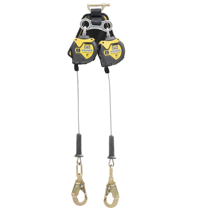 The R413008LE 8-foot Bantam Twin Leg Leading Edge Self-Retracting Lifeline is a Class 2 device approved for use in leading edge applications. With a lightweight and compact design, the R413008LE has 8 feet of 3⁄16-inch galvanized steel cable, a thermoplastic housing, and includes an ultra-lightweight and compact Backpack Style Energy Absorber. The steel harness web connector allows for quick and easy attachment. When attached overhead, the Bantam has a 24-inch maximum arrest distance ideal for low clearance applications.