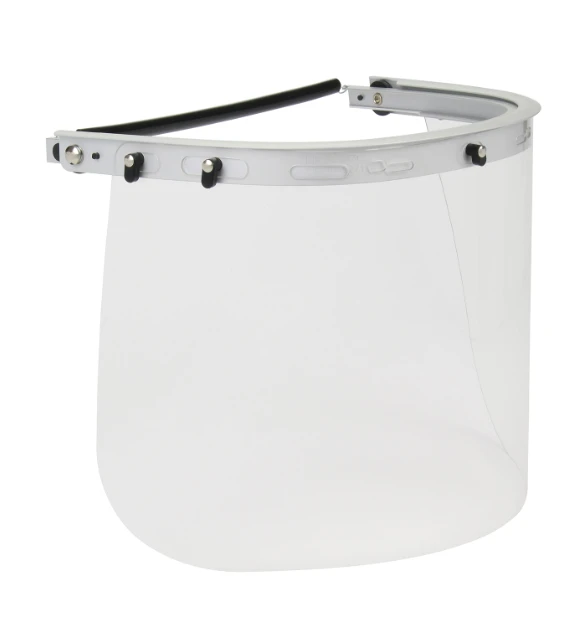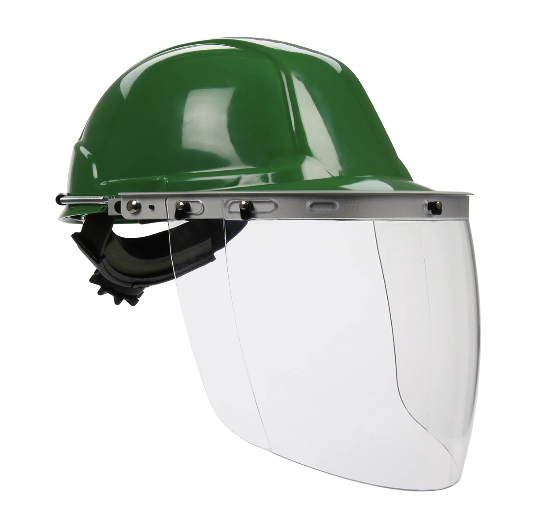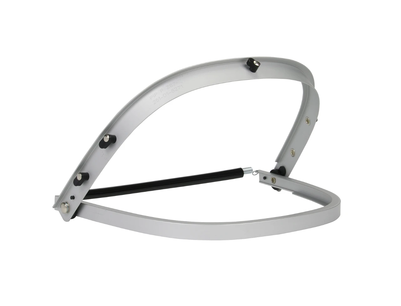 Aluminum brackets provide secure face shield mounting for tough jobs. Shield and hard hat are not included. Always wear approved eye protection in conjunction with face protection products.