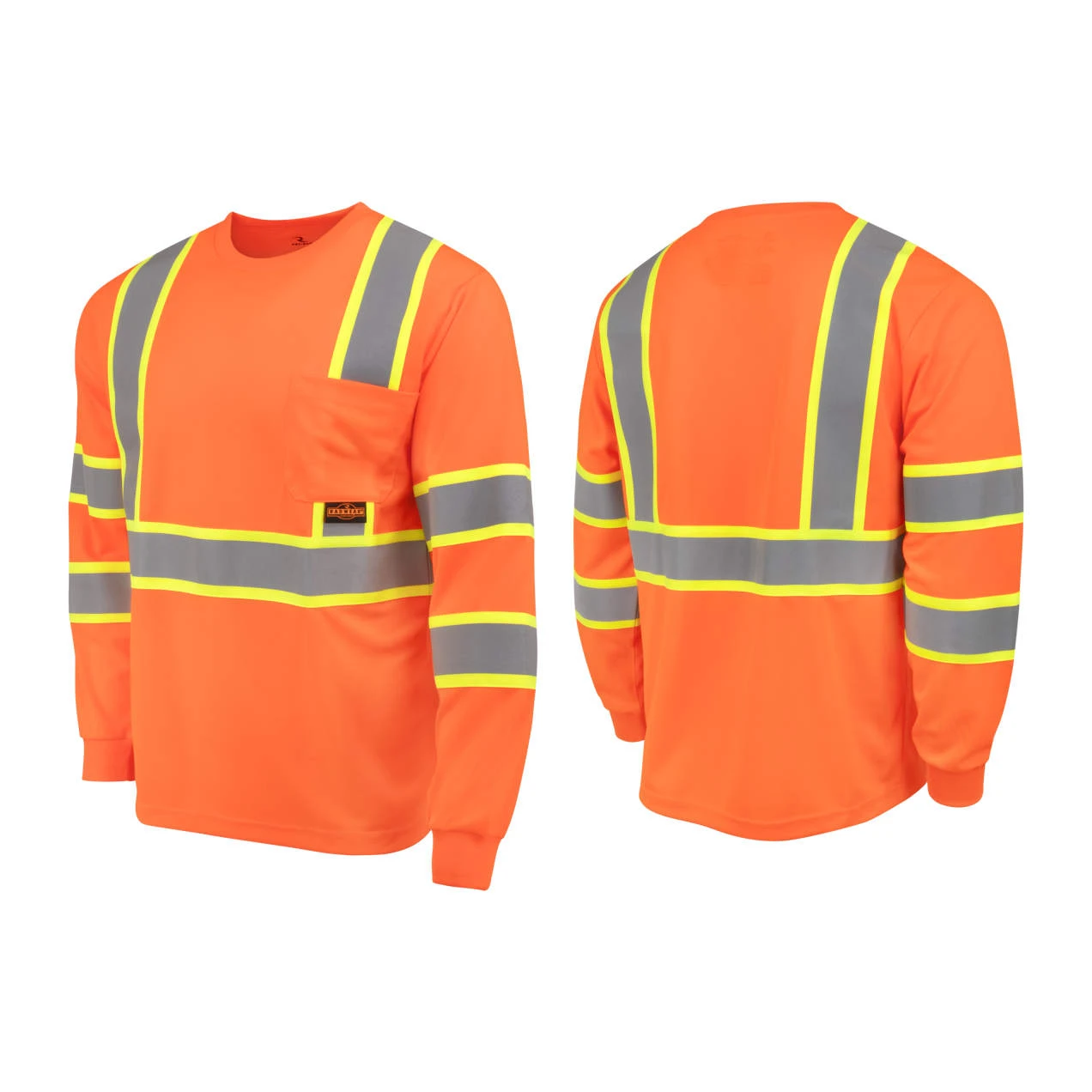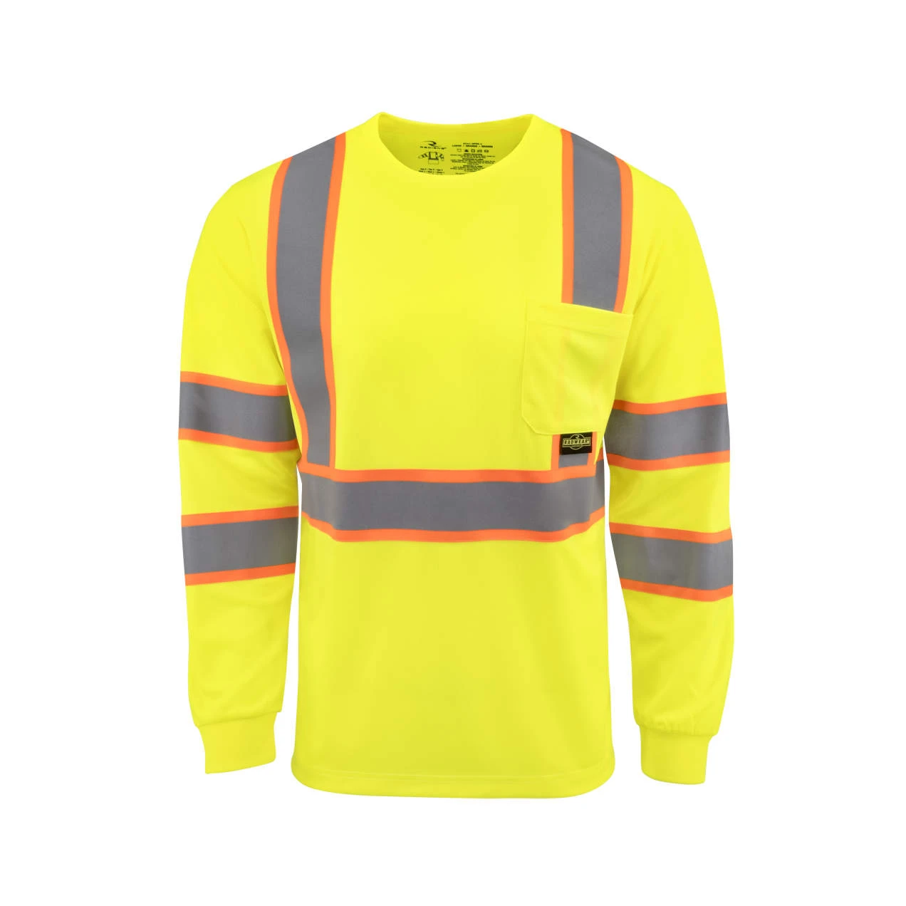 The Radians ST41-3 hi-vis long sleeve Class 3 mesh T-shirt with contrast trim helps workers stand out at job sites with complex or changing backgrounds, like roadways under construction or in heavy traffic. Long sleeves and the Class 3 rating also provide extra visibility and arm protection from the sun and elements. Engineered with Max-Dri™ moisture wicking mesh technology, workers stay cool, dry, and comfortable in a soft but durable T-shirt that meets the ANSI/ISEA 107-2020 high-visibility standards.