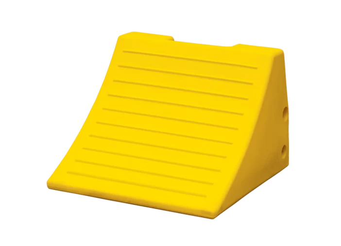 The Checkers™ industrial wheel chocks, MC3009 for ground vehicles are manufactured with highly durable, lightweight high-density polyethylene (HDPE) and they feature a larger base that makes them ideal for use with heavy equipment. MC3009 wheel chocks are designed for mine support equipment such as lubrication trucks and heavy maintenance vehicles. Rated for tire sizes up to 65 in. (165.1 cm) diameter and gross vehicle operating weight up to 245,000 lbs. (111,130 kg). A maximum rated payload of 70 tons.