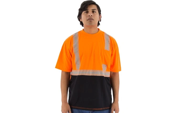 High Visibility Short Sleeve Shirt with Reflective Chainsaw Striping, ANSI 2, R, Orange/Black #75-5216-Logo (Logo Included)