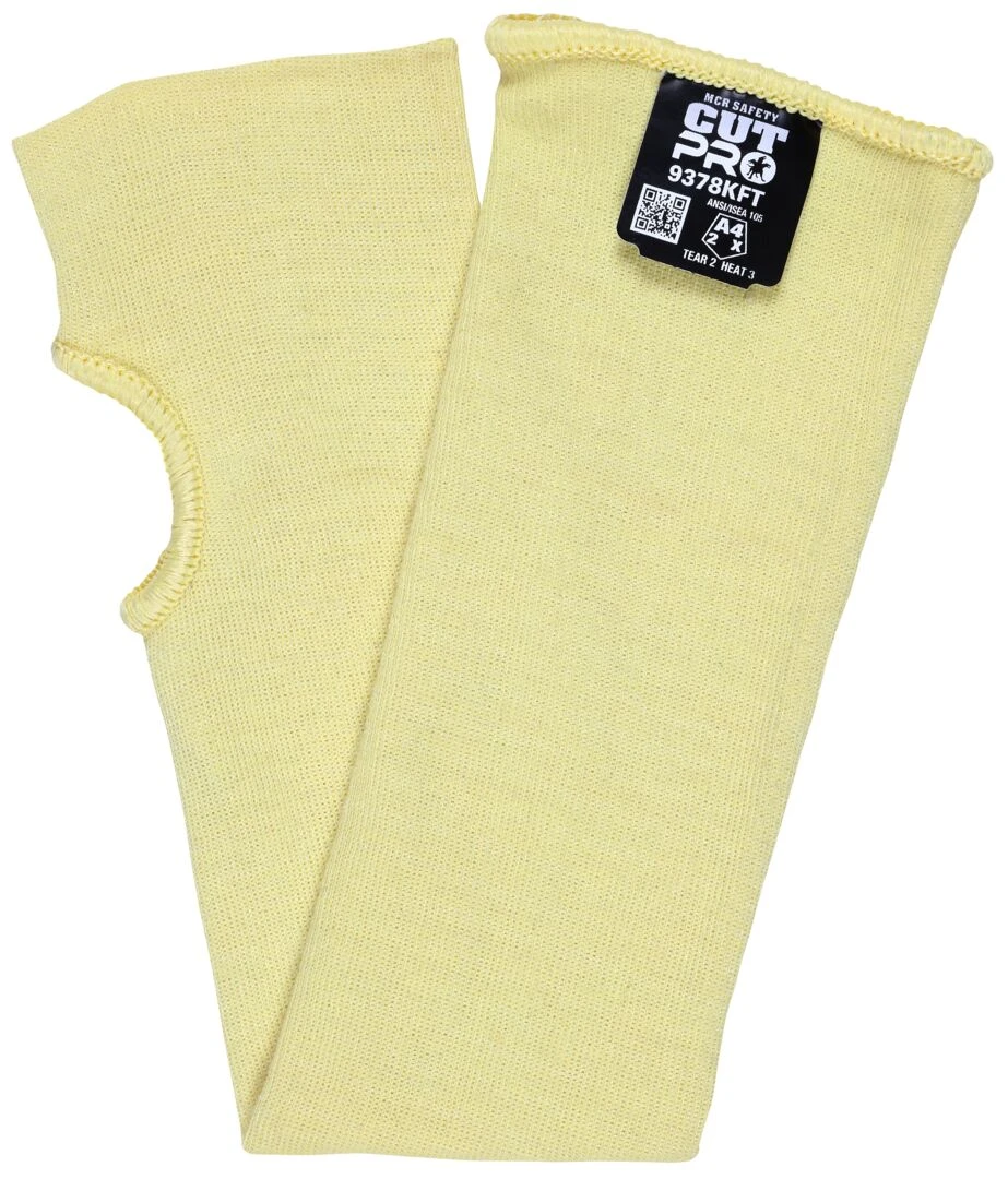 When your tough jobs present cut and scrape hazards, sleeves made with DuPont™ Kevlar® fibers offer outstanding protection. Our 9378KFT CutPro® sleeves are constructed with Certified DuPont™ Kevlar® and other synthetic fibers and are comfortable and easy to wear throughout the day. The 18-inch 9378KFT sleeve with thumb slot can be worn with gloves for additional arm protection.