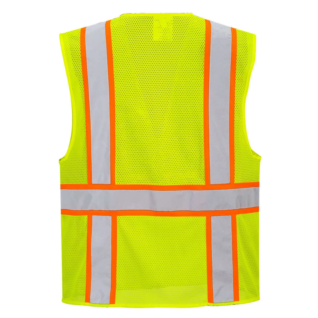 This vest uses lightweight, cooling mesh fabric, with a zipper fastening. It includes 4 external pockets, 2 internal patch pockets and contrast tape configuration.