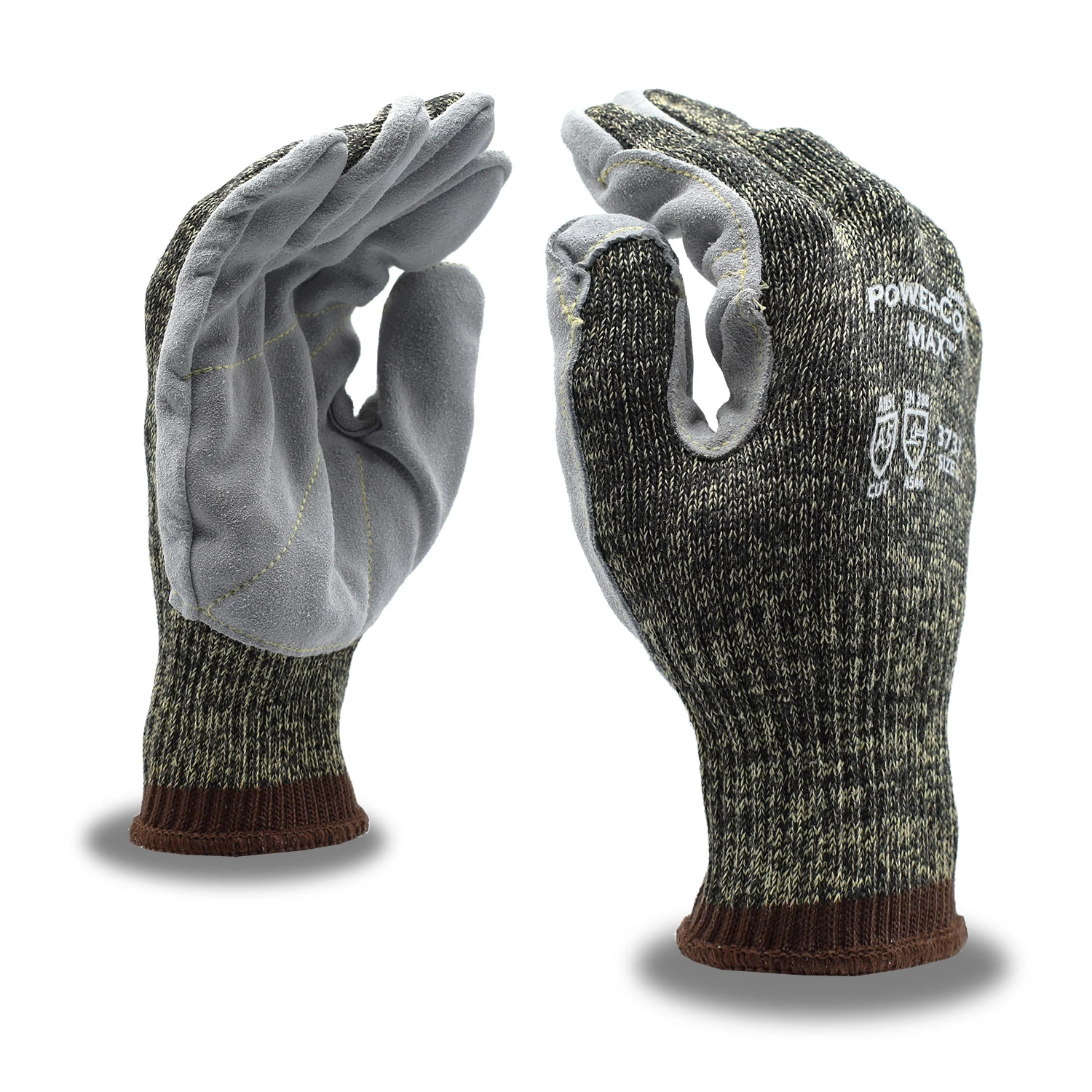 Power-Cor Max glove features a 10-gauge, Aramid/Steel/Cotton shell and split pigskin palm with synthetic leather forchettes.
