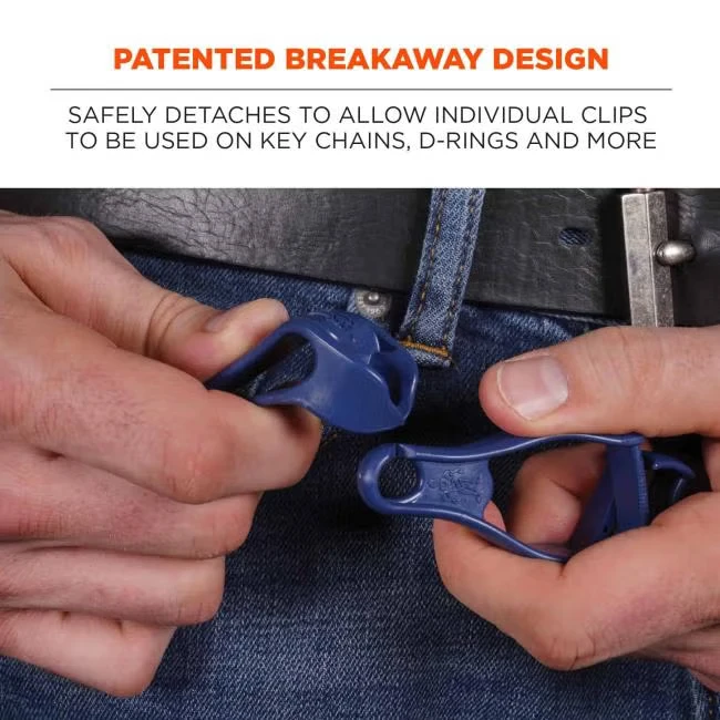 By keeping gloves, PPE and other gear clipped to the user, it helps prevent dropped and lost items while reducing injuries and general foreign-object hazards. A breakaway design helps prevent dangerous hang-ups by safely separating and allowing individual clips to be used independently on D-rings and other attachment points.