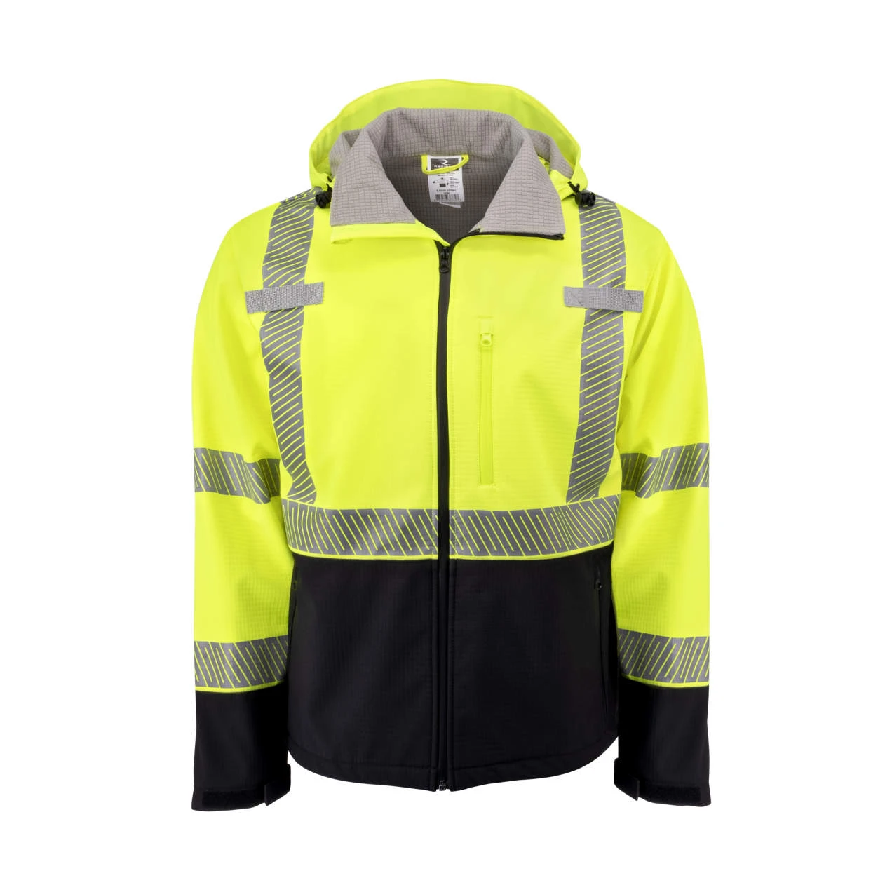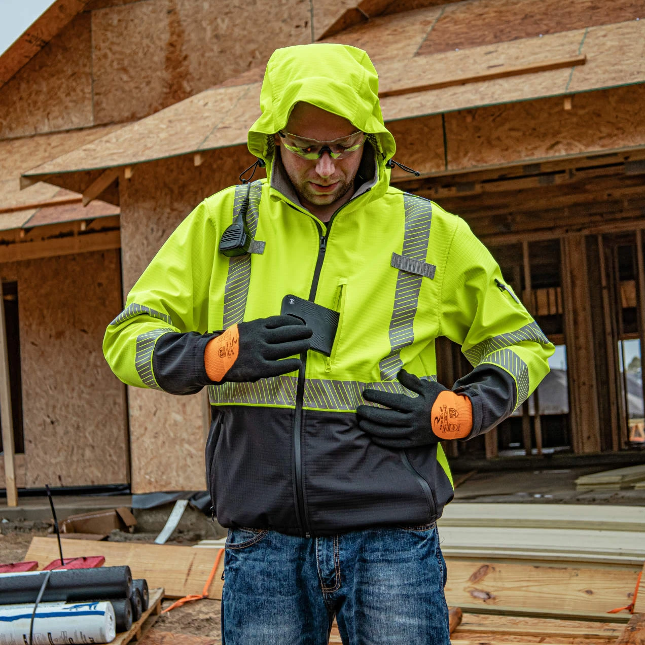 Radians SJ322B Type R Class 3 Ripstop Softshell Jacket provides comfort, warmth, and protection. This jacket features an inner waffle fleece lining and a Thermoplastic PU membrane for lightweight all-day comfort. Segmented reflective tape provides mobility as well as additional visibility. The adjustable, removable hood and the waterproof zipper closure keeps you dry in challenging conditions. Plus, the dual mic tabs and multiple pockets—one large enough for a tablet—provide plenty of storage for everyday essentials.